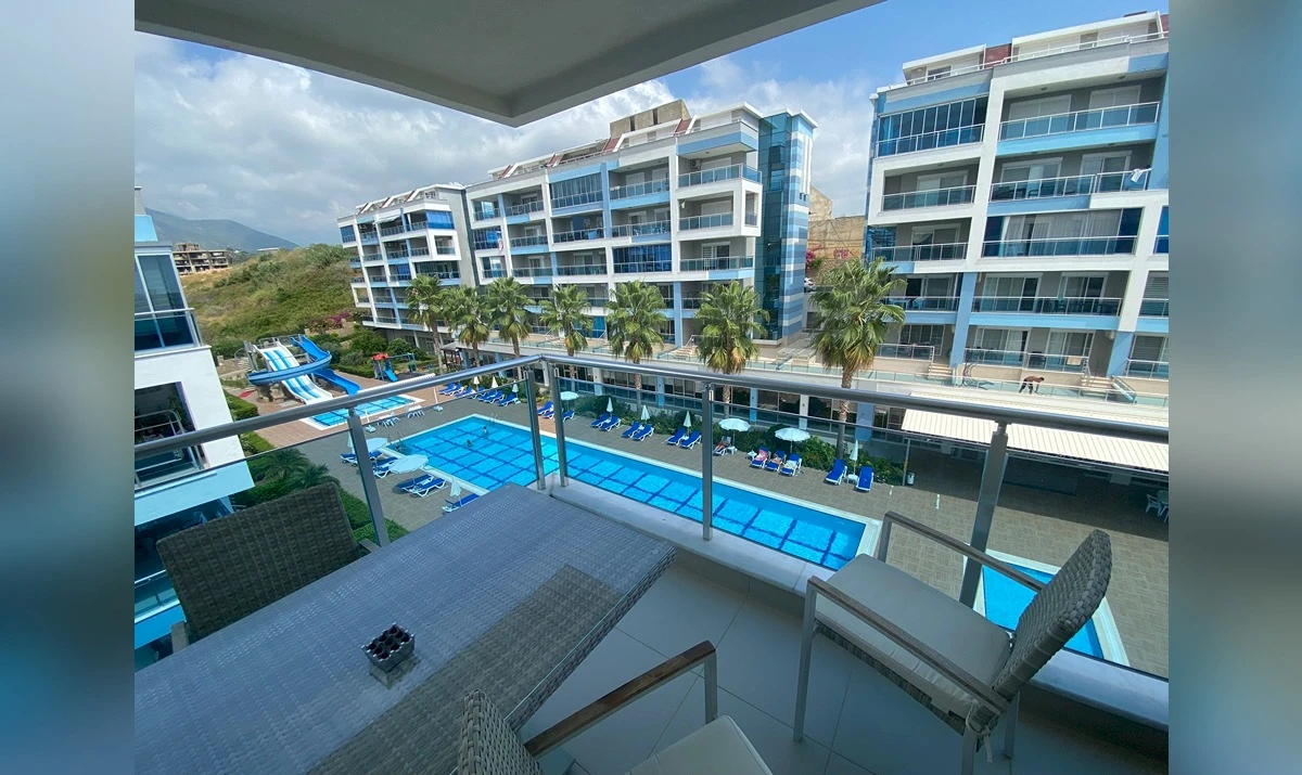 Дуплекс находится на 3-ем этаже в комплексе в 200 метрах от моря. В комплексе есть открытый, закрытый бассейн, фитнес-центр, сауна, хамам, массажные кабинеты, боулинг, зона барбекю, игровая площадка, генератор, 24/7 охрана, баскетбольный и теннисный корт, ресторан и бары.