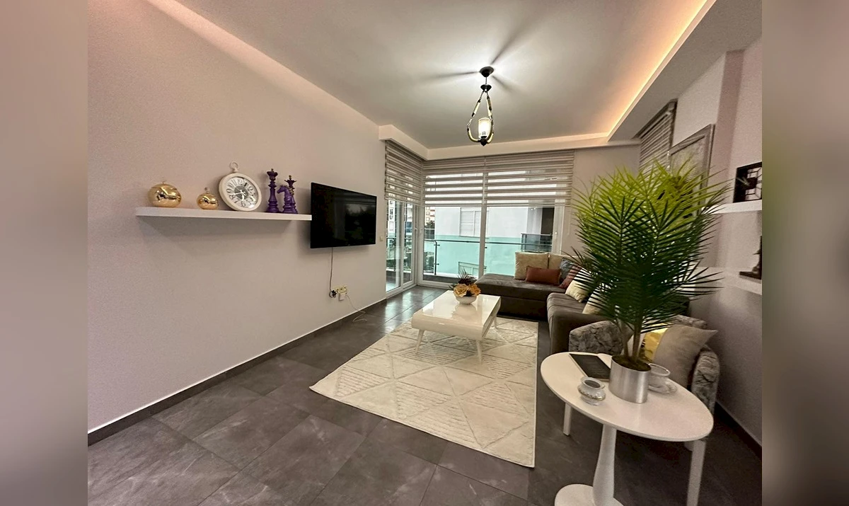 Квартира находится на втором этаже в пятиэтажном здании. Айдат (ежемесячное обслуживание) стоит 400 лир.
