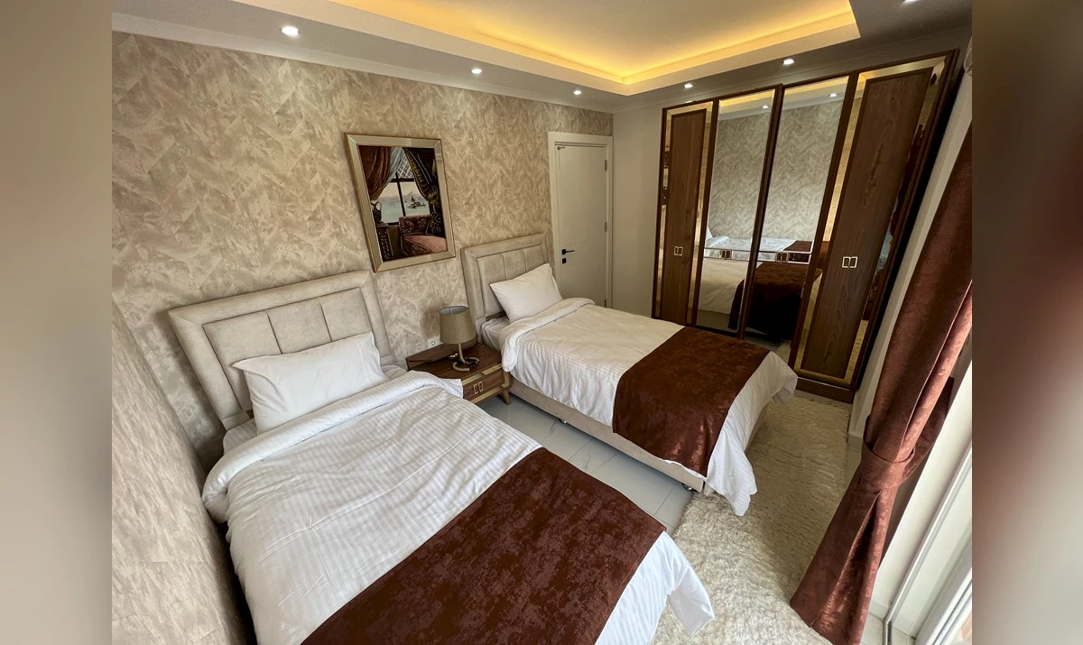 Квартира расположена на 10-ом этаже и подходит под гражданство. На терассе находится собственная сауна. В квартире есть 3 ванной комнаты и джакузи.